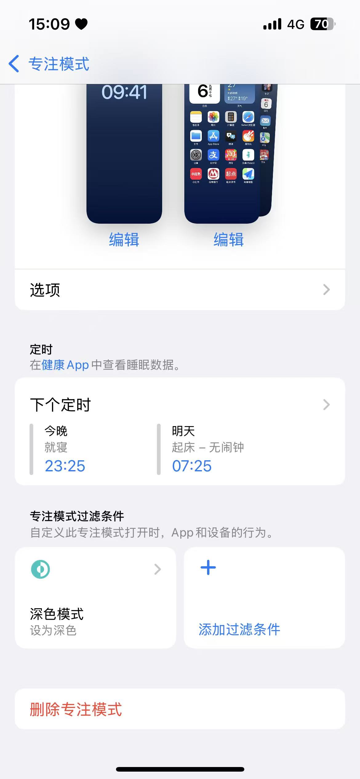 iPhone 睡眠专注模式自动关闭时不会关闭深色模式