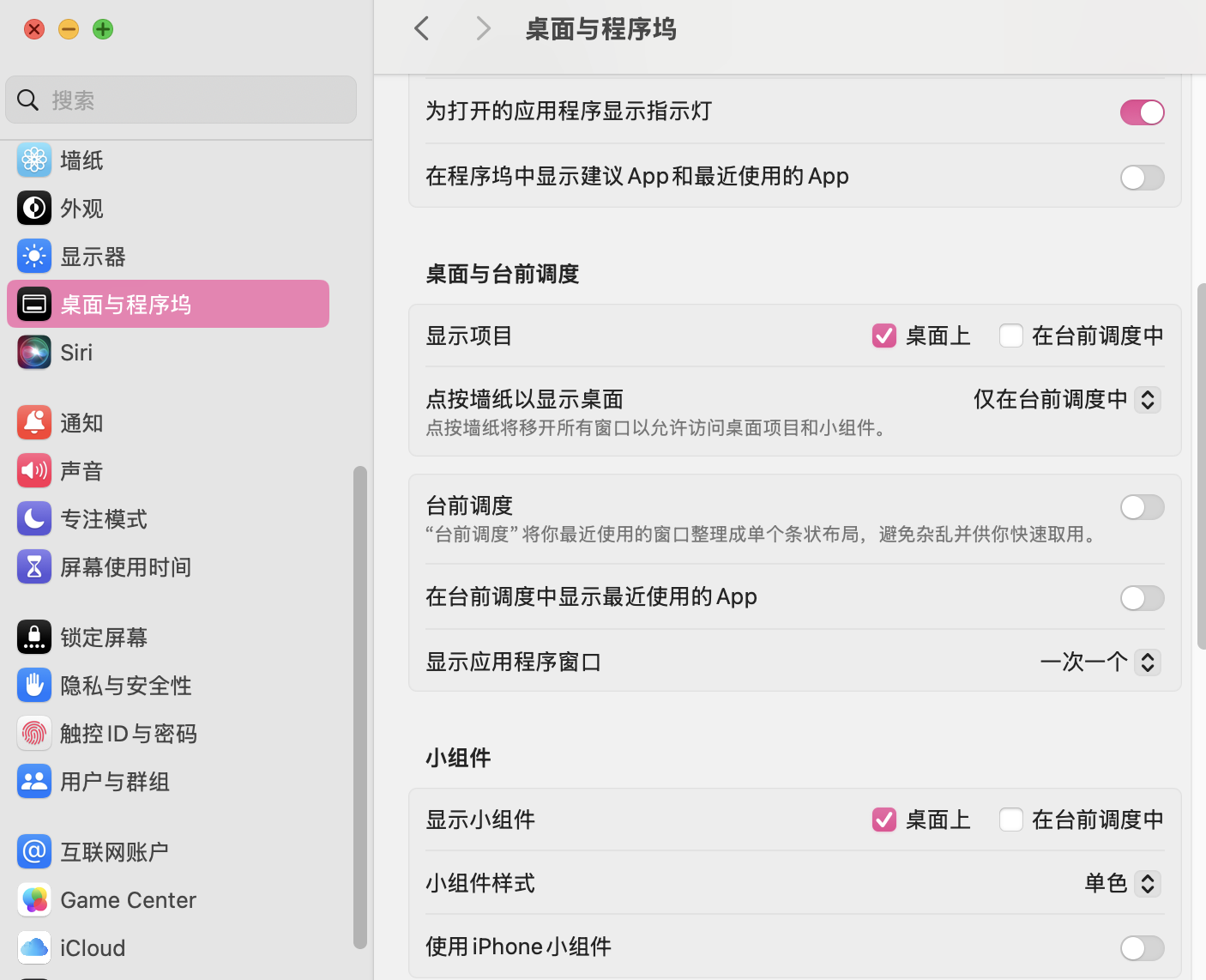 原标题:MacOS15.7.2无论怎么在设置中进行设置,“点按墙纸以显示桌面”都不能关闭,请问如何解决
