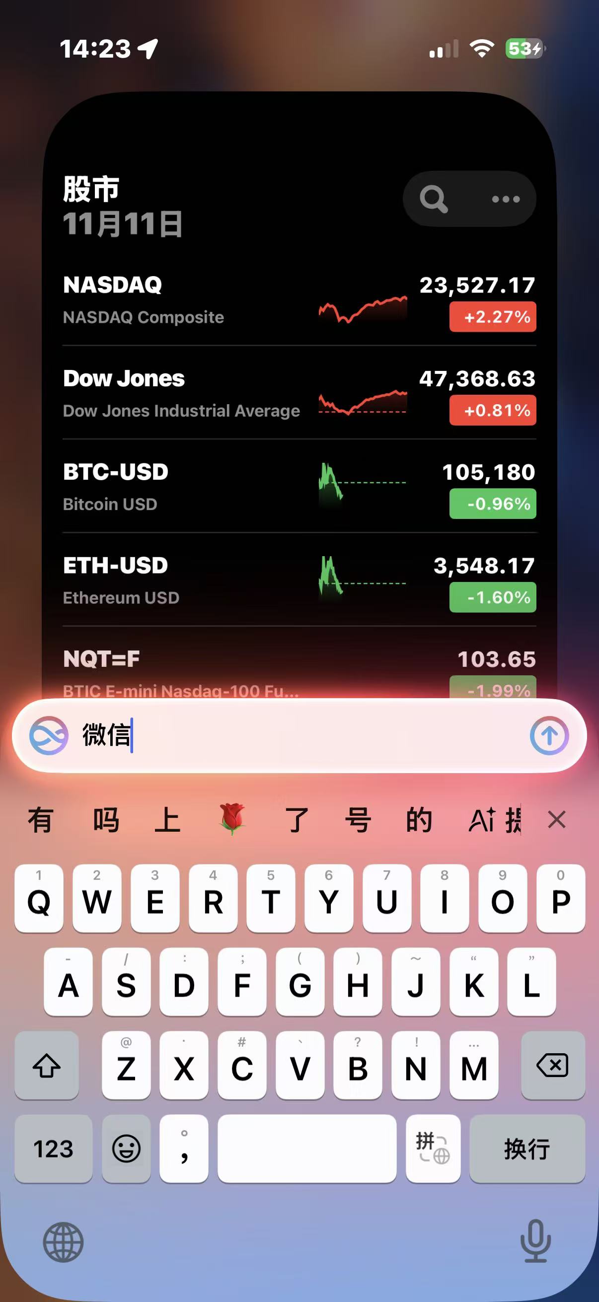 iPhone 17 Pro Siri 双击屏幕底部小横杠键入siri的时候,有时候可以自动联想,有时候不行
