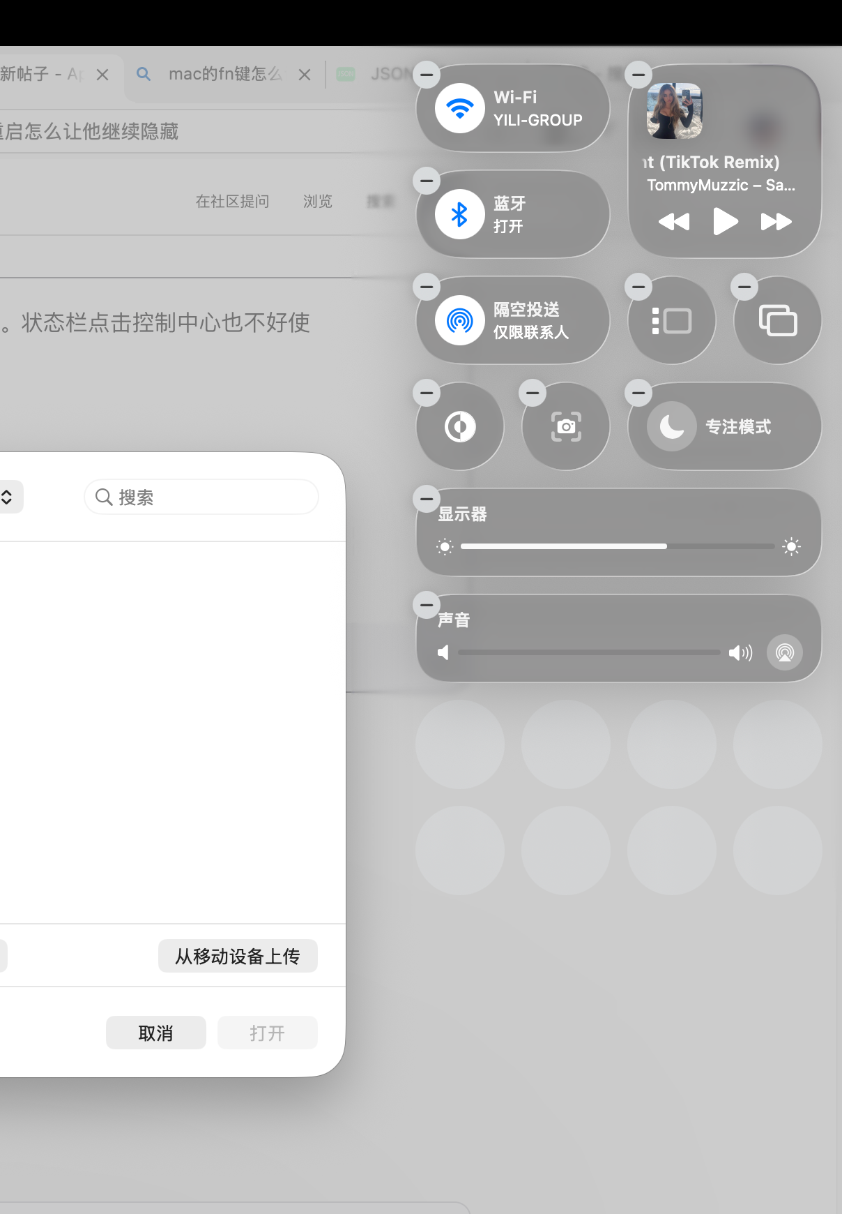 按了fn c组合键以后,控制中心一直展示,无法隐藏了,除了重启怎么让他继续隐藏