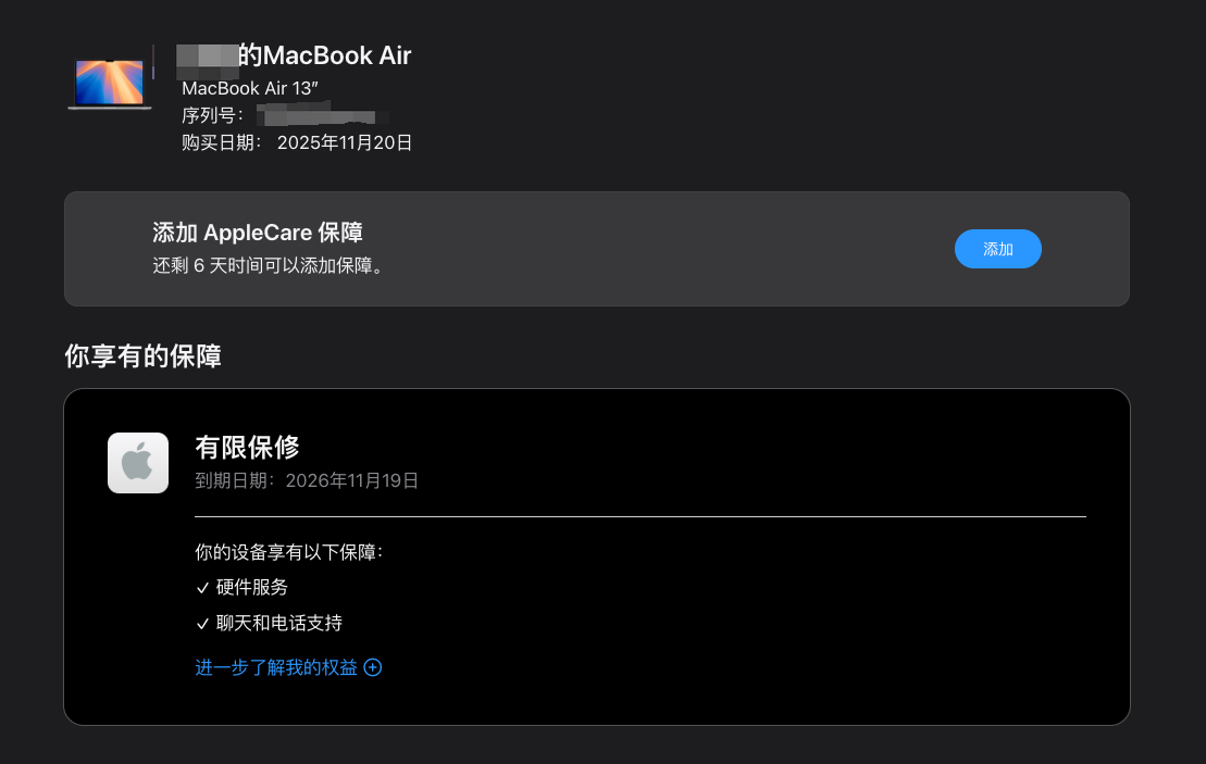 某宝买的macbook air m4新机添加applecare失败,怎么解决?