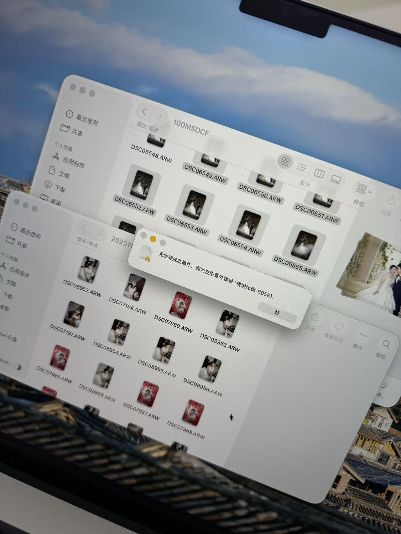复制粘贴,提示无法完成此操作,因为发生意外错误(错误代码-8058)