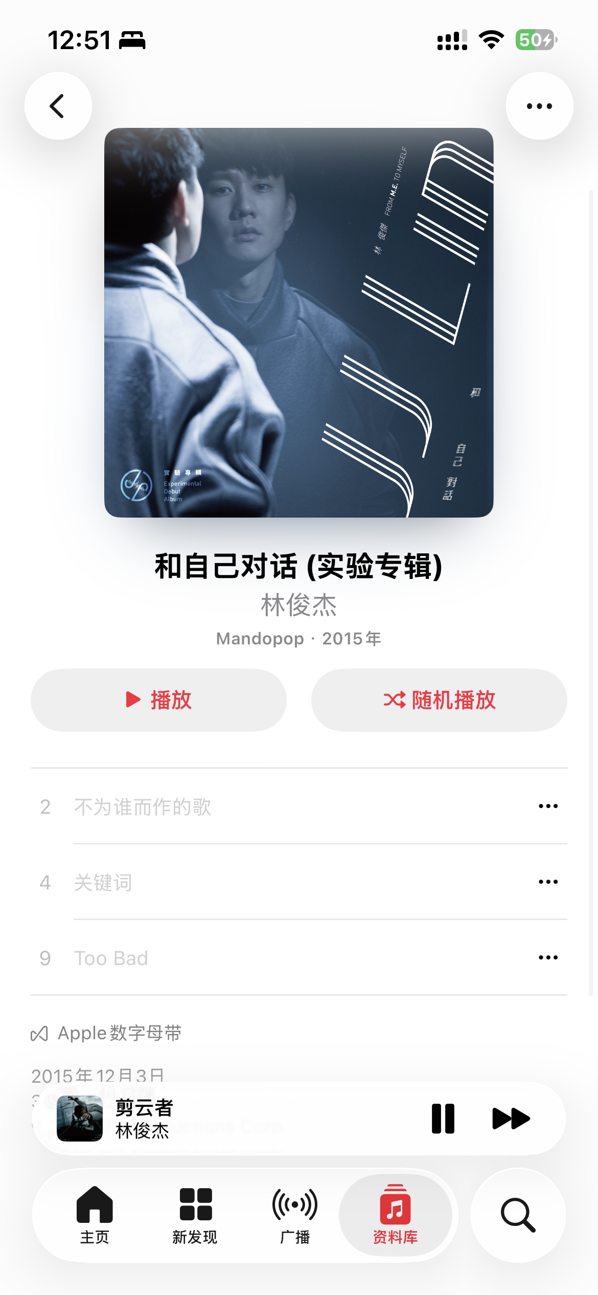 林俊杰《和自己对话》专辑在中国大陆地区Apple Music中搜索不到,已下载歌曲也不能播放