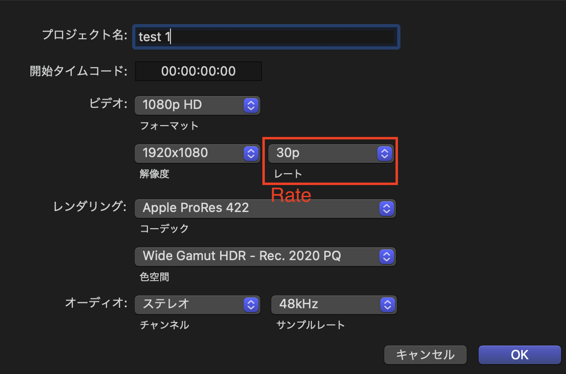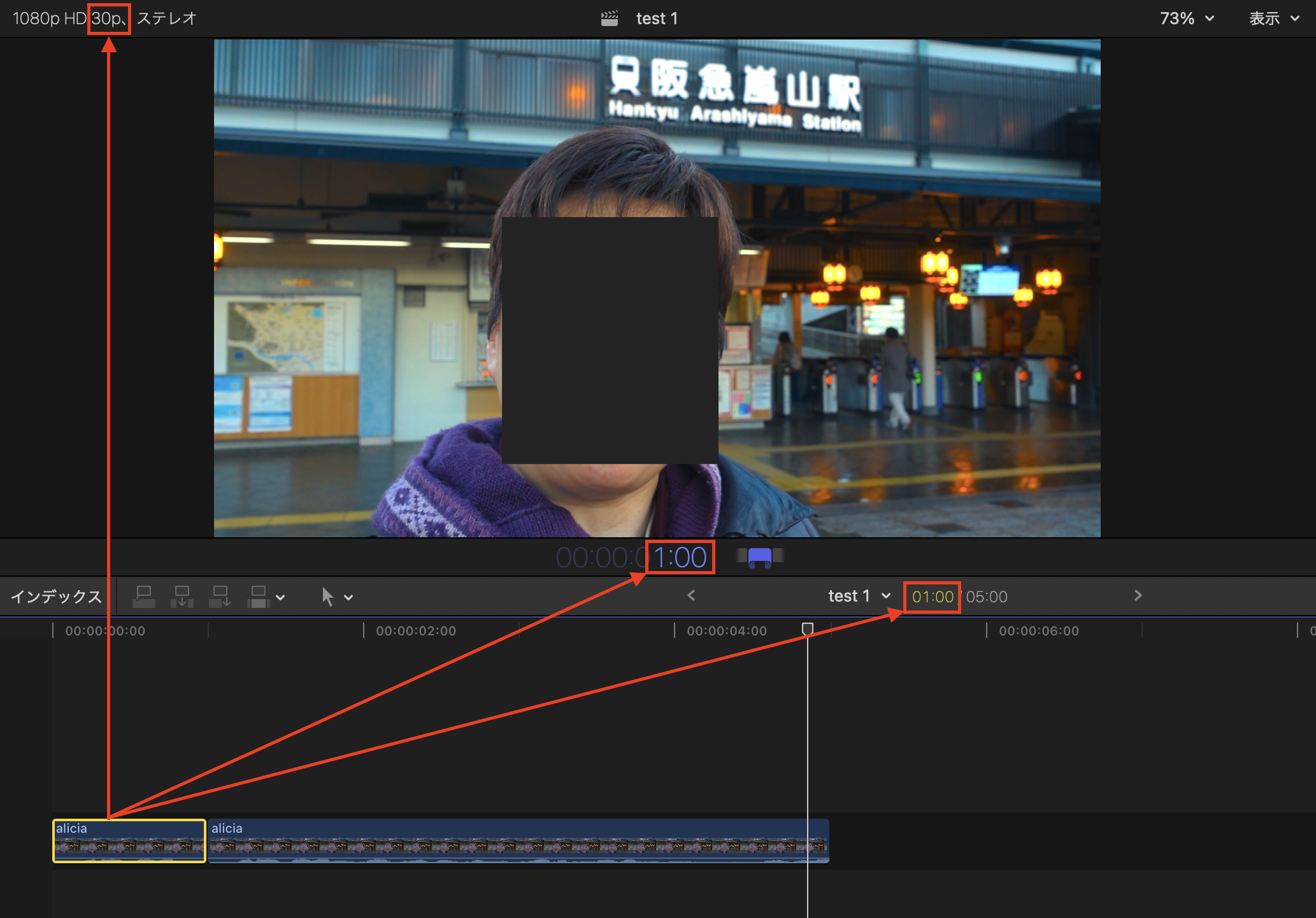 拍摄时,摄像机和项目的帧速率必须设置为相同值。如果您执行了步骤 1 和 2 后,帧速率仍未达到 1 秒,请检查片段的帧速率。如果剪辑片段和项目的帧速率不同,FCP 会自动调整,因此可能并非始终为 1 秒。