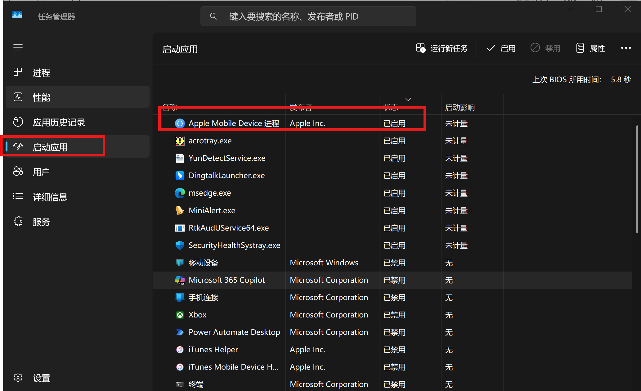 此外,需要注意的是,禁用了这几个进程之后,如果需要使用iTunes、Apple 设备等软件的时候,请注意这些进程是否正常开启。
