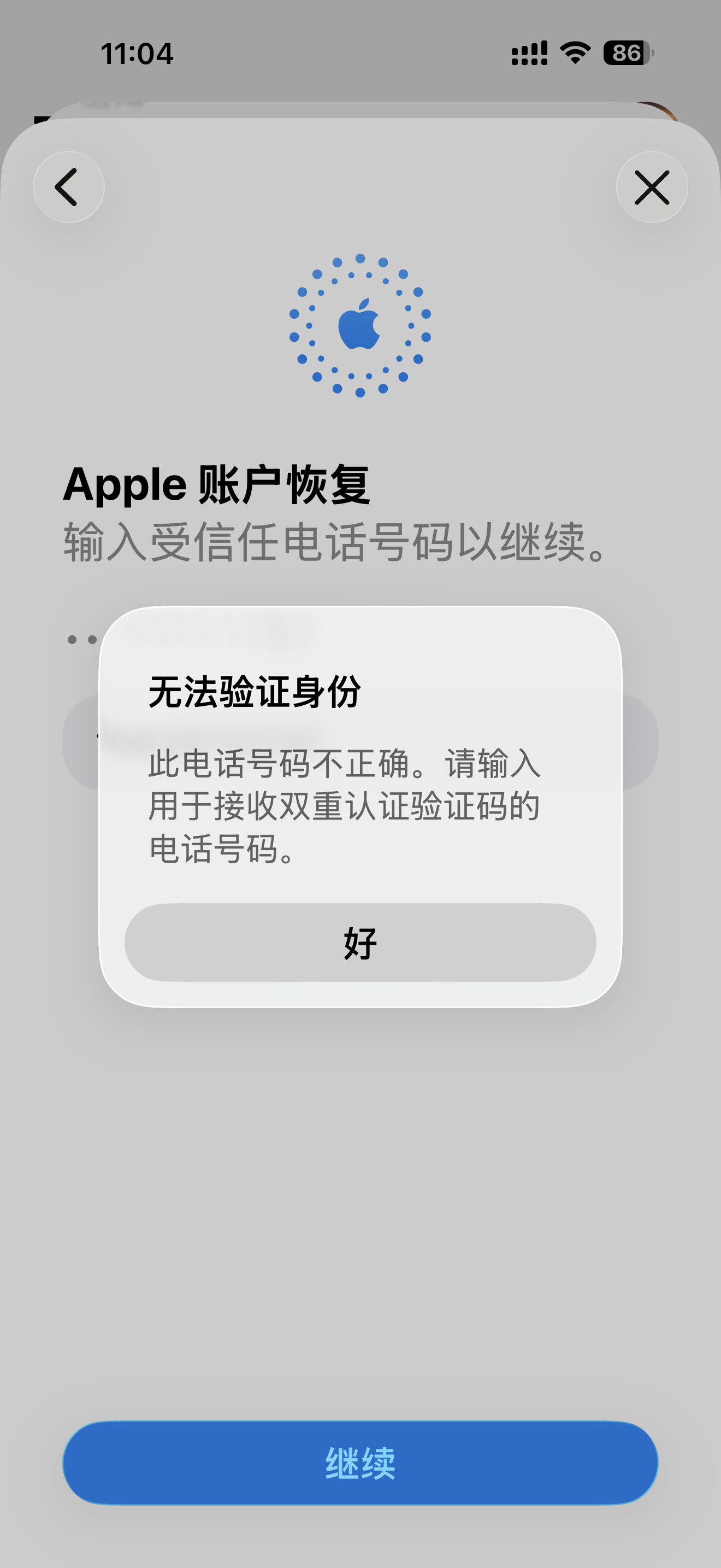 账号恢复,填写新的手机号显示此号码不正确,请输入用于接收双重认证验证码的电话号码