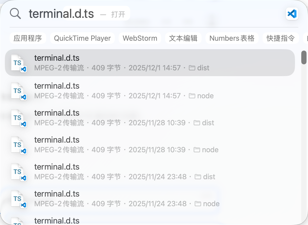 我想要利用聚焦搜索唤起 terminal时,会出现我的一些打包的文件出现在搜索的情况,很难受。