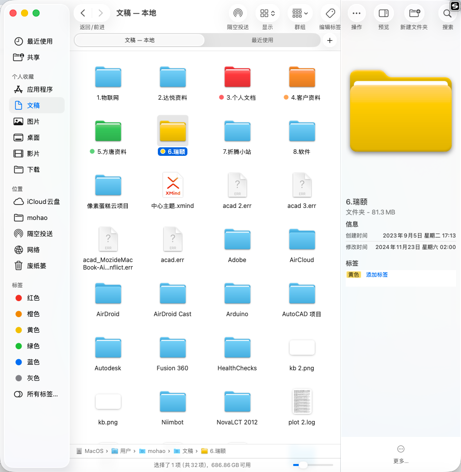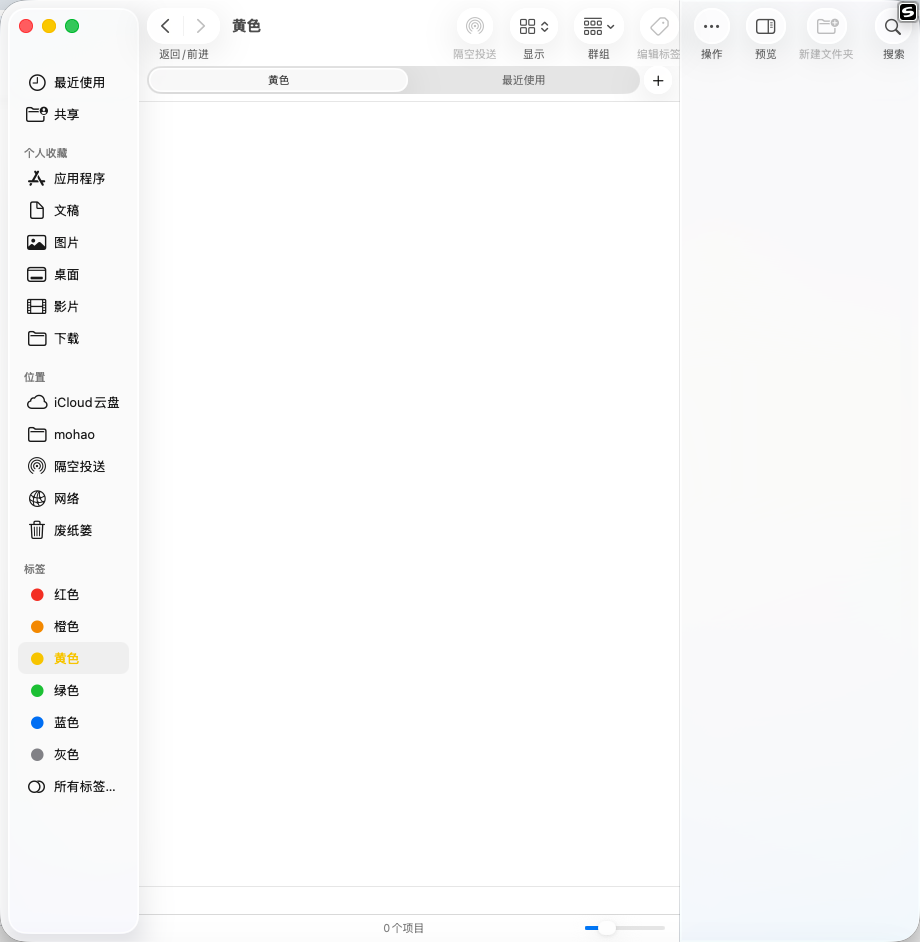 访达设置了标签,但是点击标签缺不显示关联的文件夹