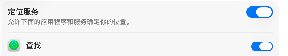 问题:不能打开查找我的mac,如下图所示,iCloud和查找定位都已经打开,但是查找我的mac仍然处于关闭状态,查找APP也看不到我的mac