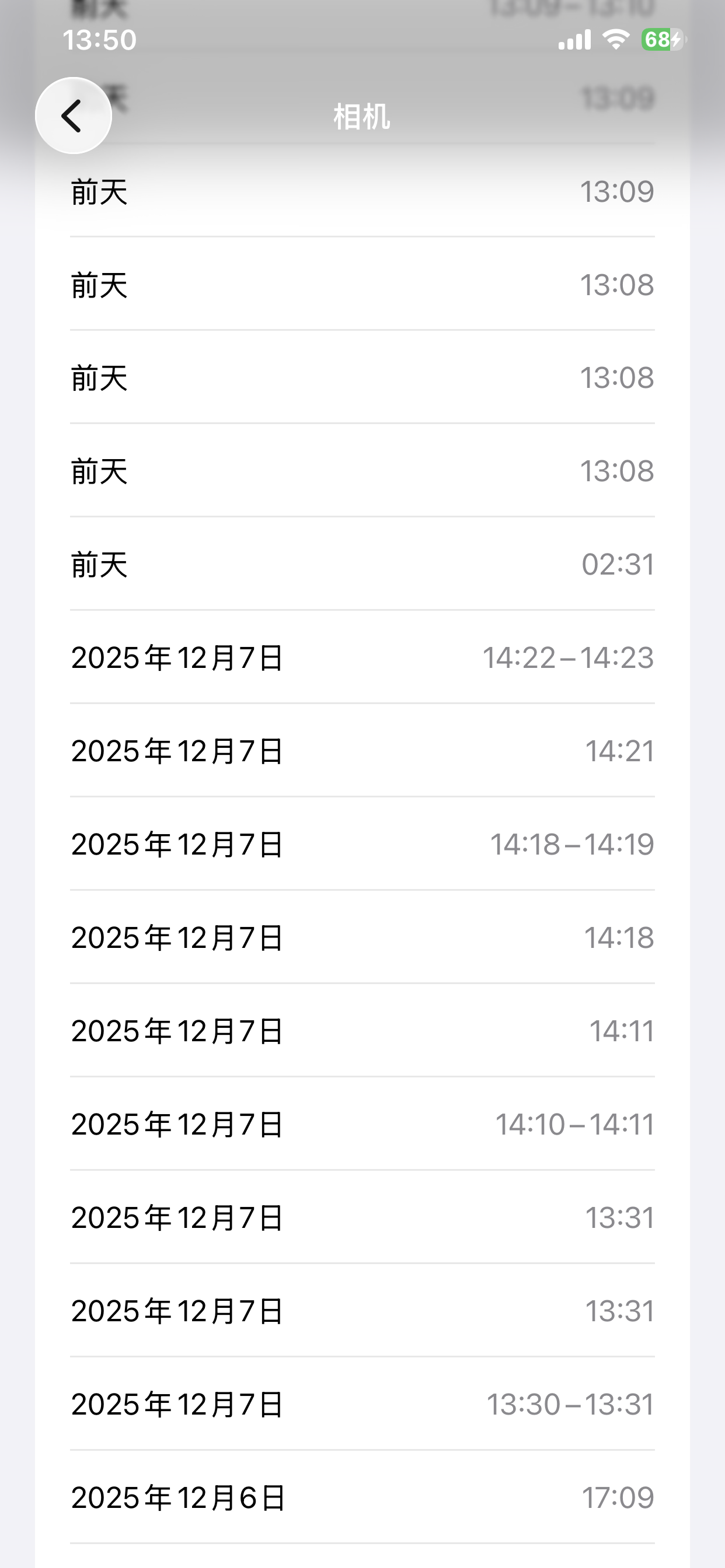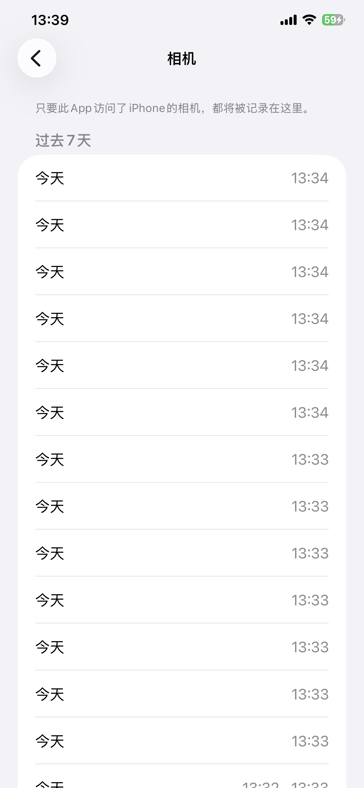 图片中所示,相机app一直在调用相机, 截图只展示了一部分,实际全天多个小时全是图片中那样,已经持续了好多天,今天特别注意到,因为镜头对焦的咔咔声十分明显 使我发现此事,我并没有打开相机app,期间我都是正常使用其他软件,这是怎么回事?
