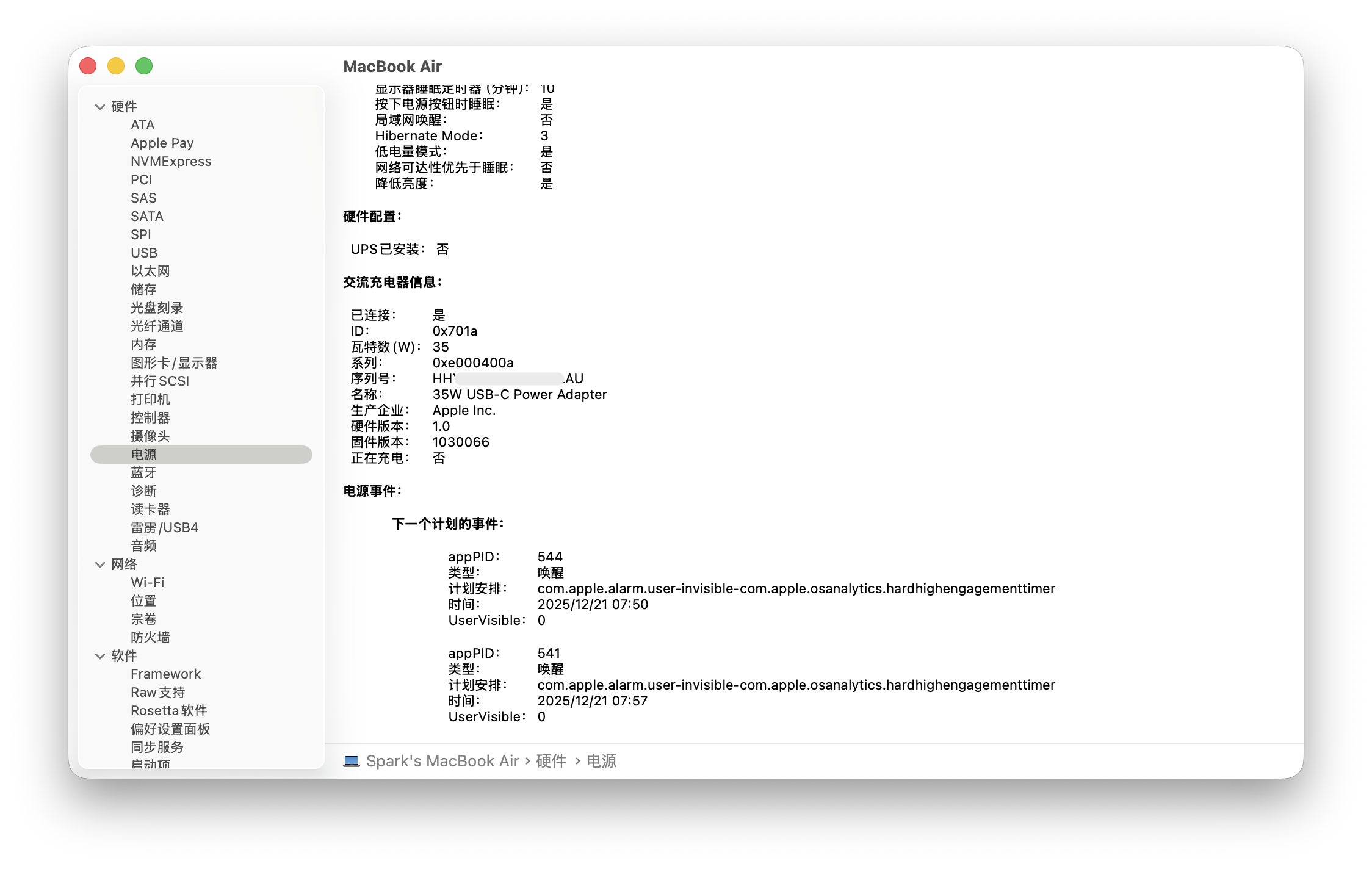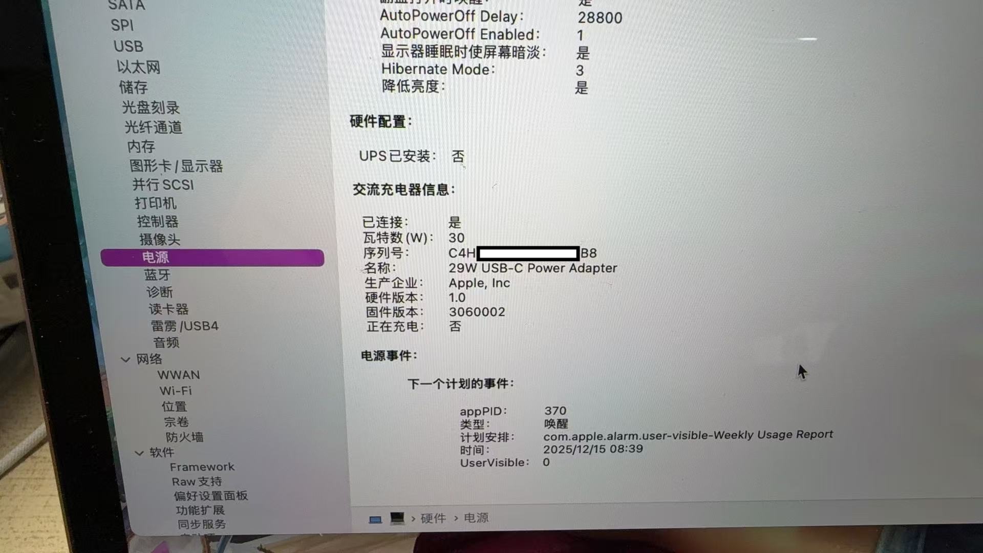 macbook air m1 在使用苹果官方充电器时是否可以读出充电器序列号