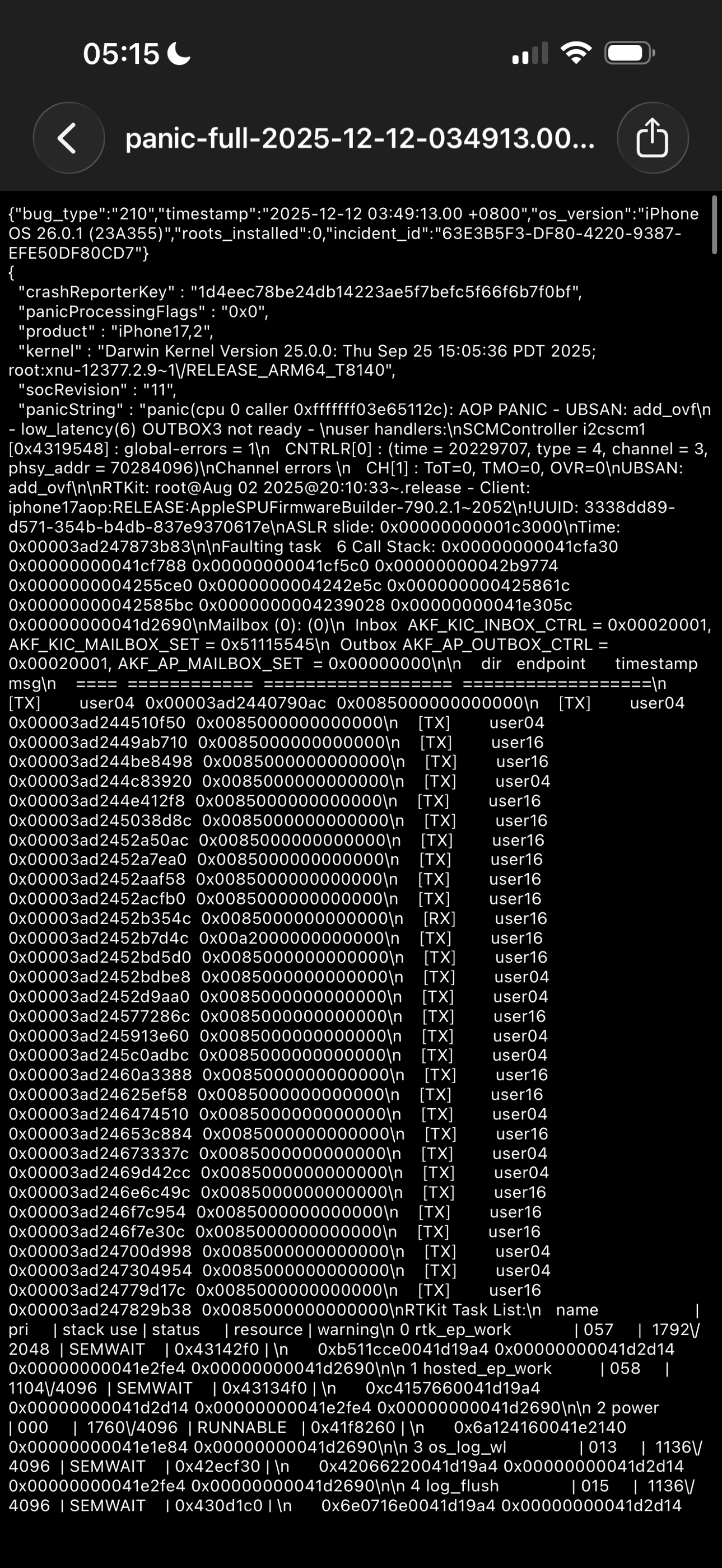 苹果16promax ios26.01系统半夜手机重启请问是什么情况