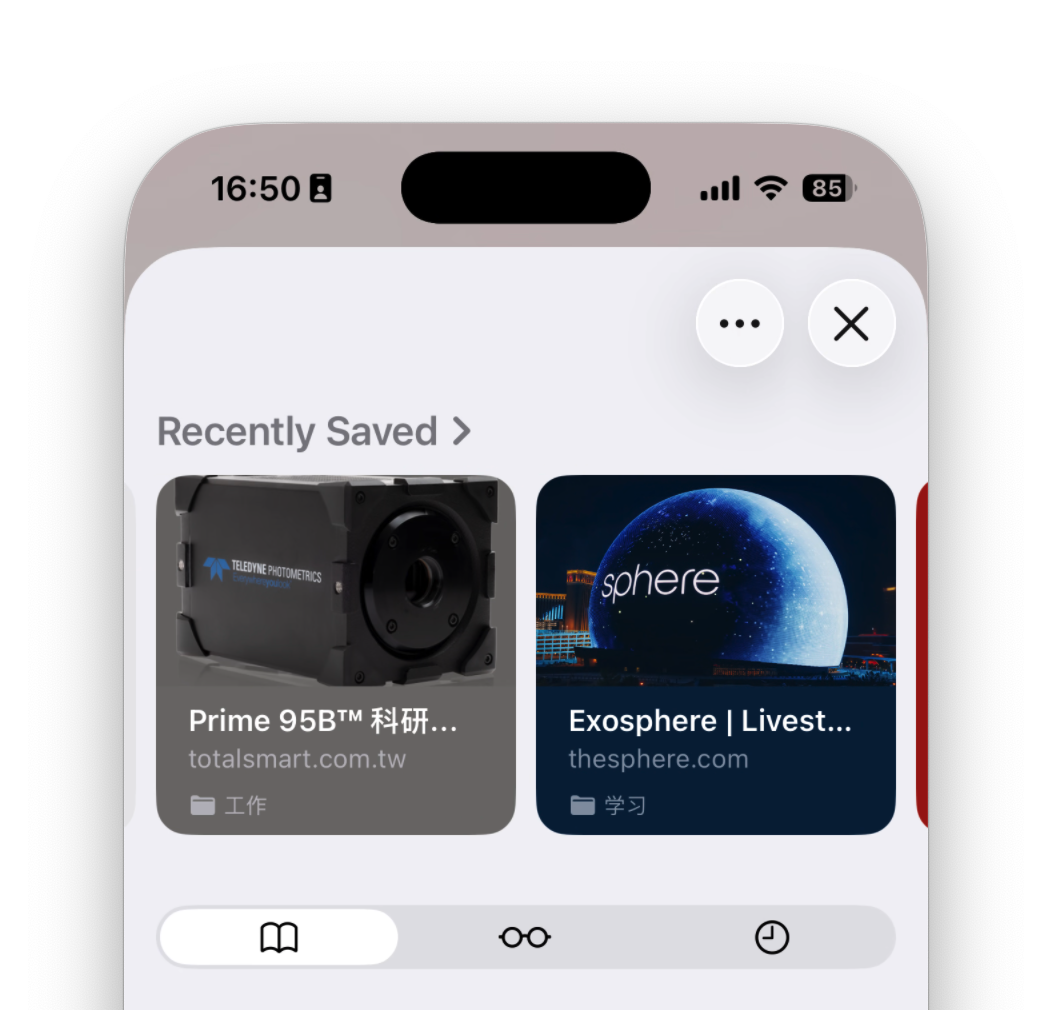 如何关闭Safari标签页顶部显示的最近保存