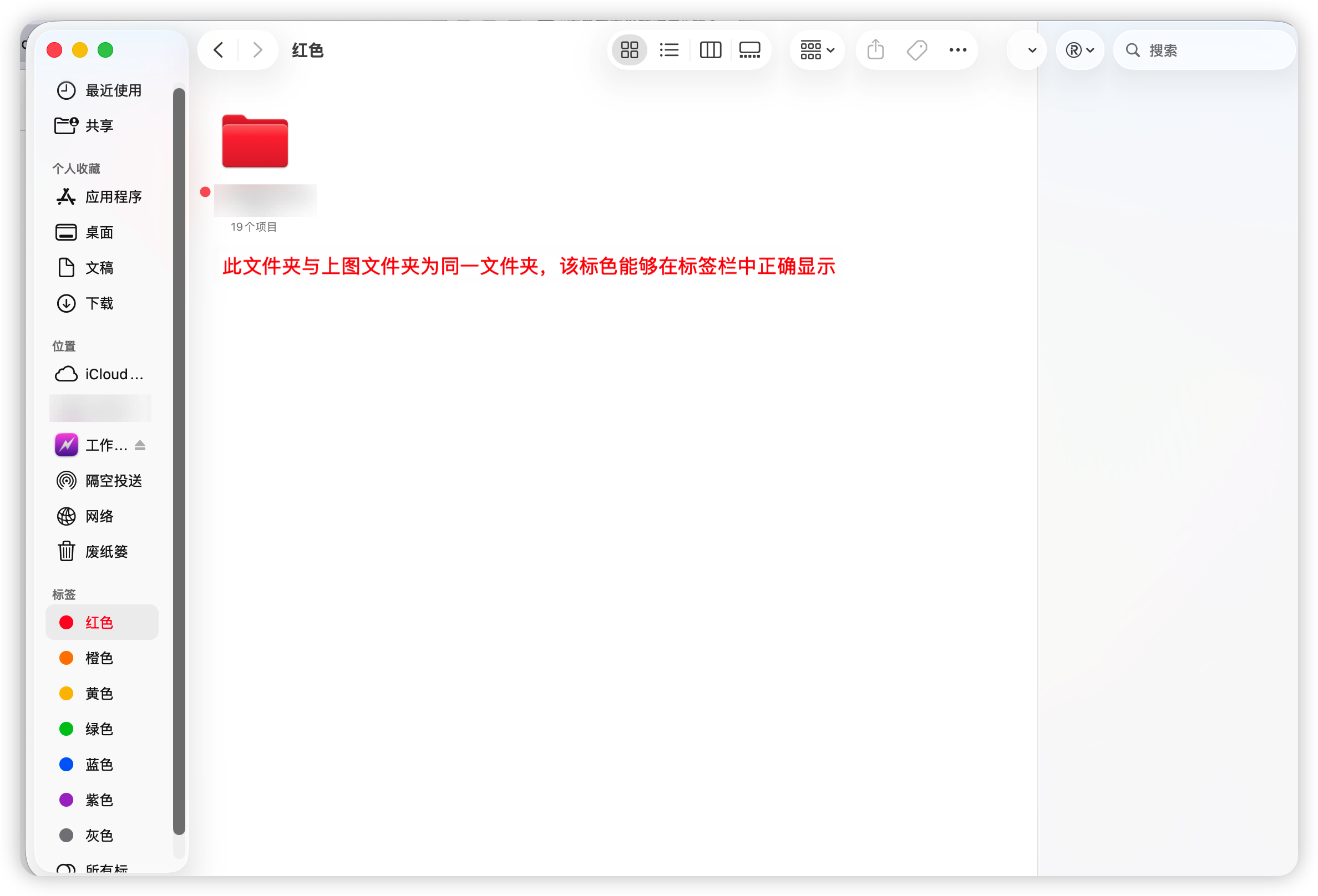 在外接硬盘中给文件夹添加标签颜色后,仅在本页面显示标签颜色,标签列表不显示该文件夹