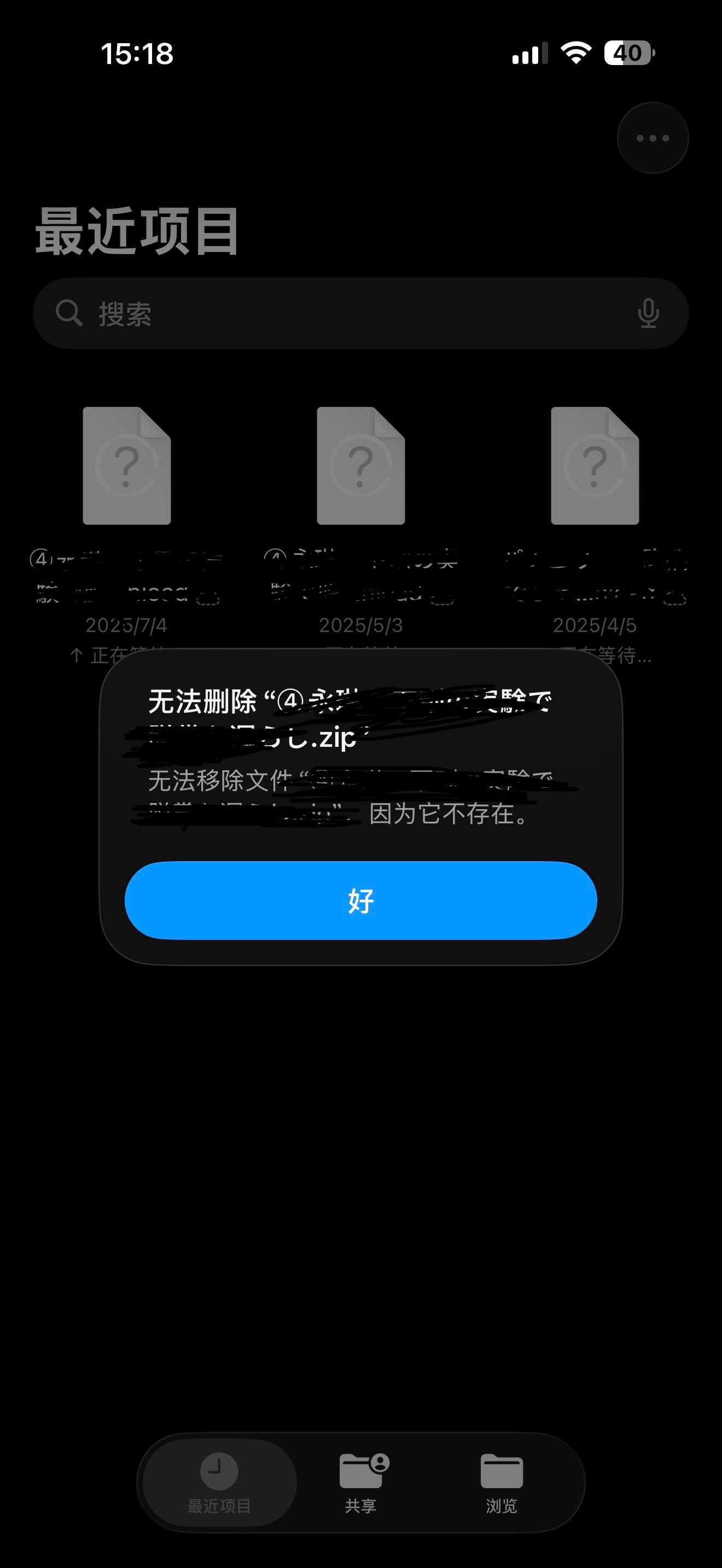 之前在苹果自带的safair浏览器想要下载文件,后来在浏览器内中断了下载并删除,后来苹果文件的最近项目中这三个文件一直删不掉怎么处理