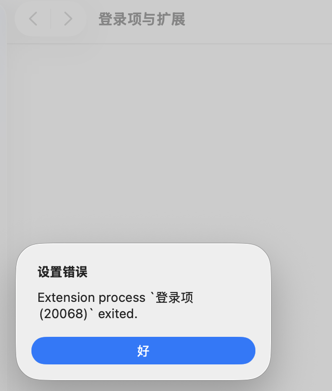 登录项与扩展一片空白,有时Extension process‘登录项 (20068)' exited.