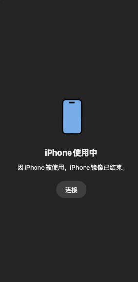 手机更新到了26.3,Mac更新到了26.2,Mac上的iPhone镜像打开后一直显示iPhone使用中,有时候显示连接超时,之前从来没遇到过。