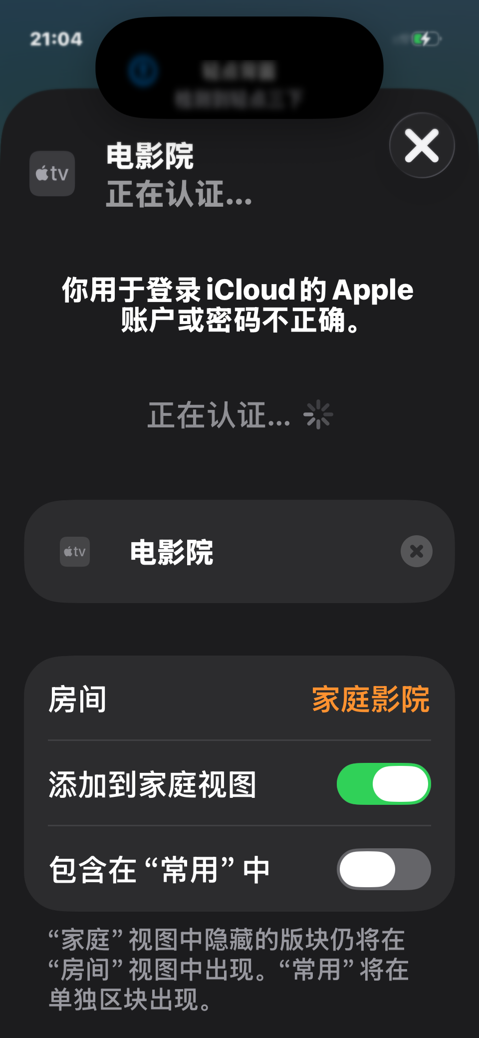 apple TV帐号异常,在家庭里面进去,输入密码那里点一下,还没有弹出键盘,就转跳到正在认证去了。