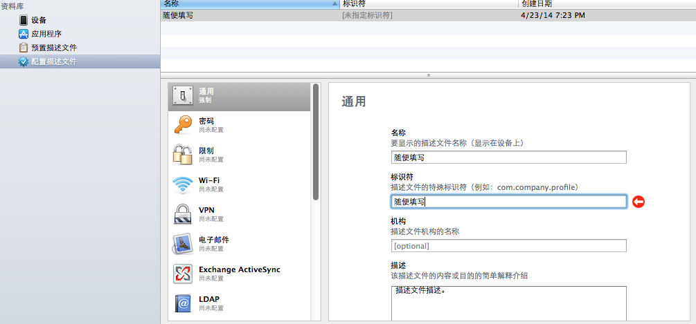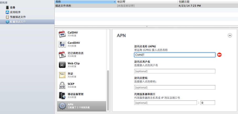 然后进入工具--配置描述文件--新建--按接图简单配置后安装进手机问题立刻解决。
