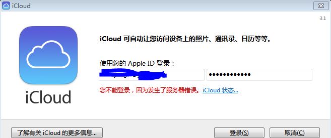 icloud 控制面板提示‘您不能登录 因为发生了服务器错误’,怎么解决!