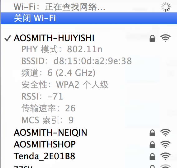 你可以按住option键,然后点状态栏上的wifi标志,如下图: