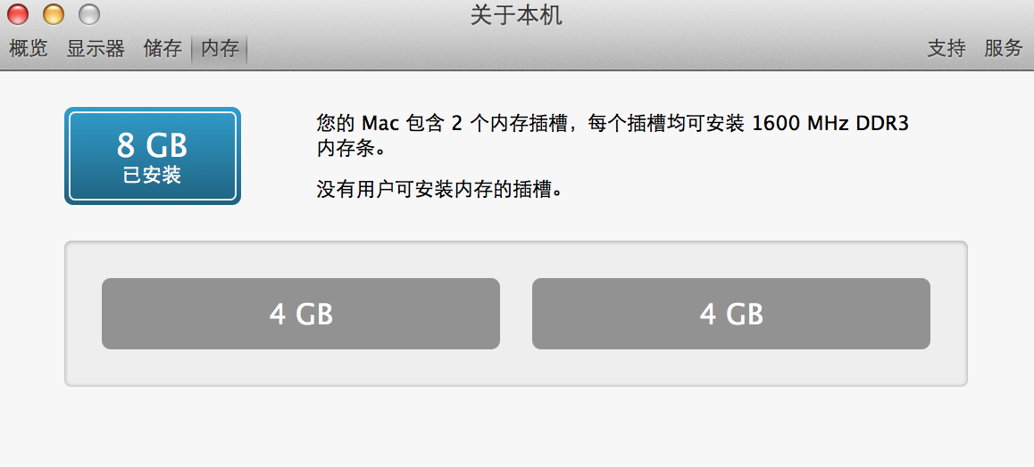 以下用户的用户个人资料: xuxiao2001 xuxiao2001 用户级别: 级别 4 2,009 积分 2014年7月3日 上午12:08 回应 胖胖兵 Macbook Air/pro的内存目前是双通道的4G的内存是2G*2的内存8G的内存是4G*2的内存你可以点状态栏上的苹果标志,然后点关于本机---内存,如下图: 回复 链接
