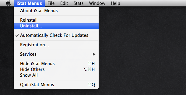 To uninstall iStat Menus, please choose iStat Menus > Uninstall from the menubar, then click Uninstall. This works, even if your trial period is over.