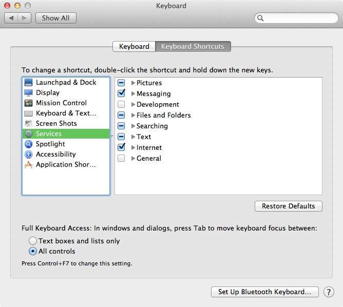 以下用户的用户个人资料: tonyfromcalgary tonyfromcalgary 用户级别: 级别 6 16,084 积分 2014年8月14日 上午9:40 回应 建伟来自成都市 如下图,在键盘系统偏好中的服务(Services), 找到你的那个软件,禁止它。 回复 链接