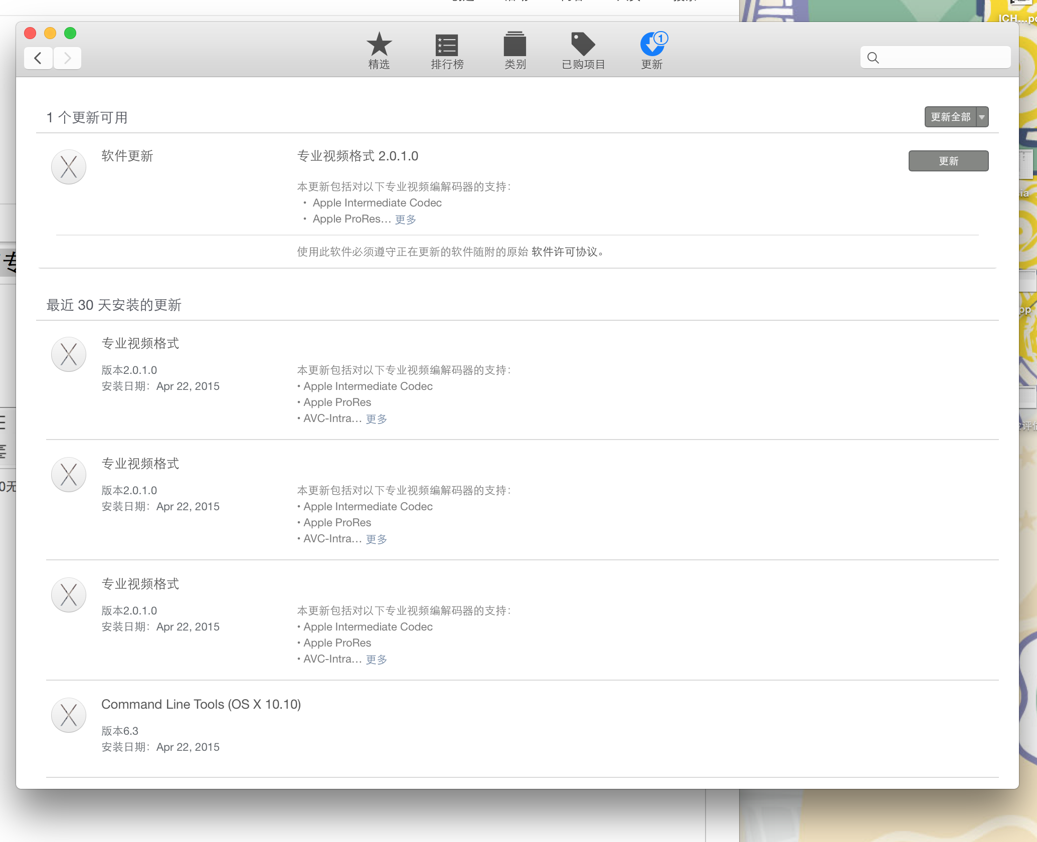 macbook pro 10.10.3下专业视频格式2.0.1.0无限重复更新