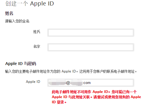 更改主要邮箱地址时,提示此电子邮件地址不可用作 Apple ID。您可能已有一个 Apple ID 与此地址关联。请重试或使用您现有的 Apple ID 登录。