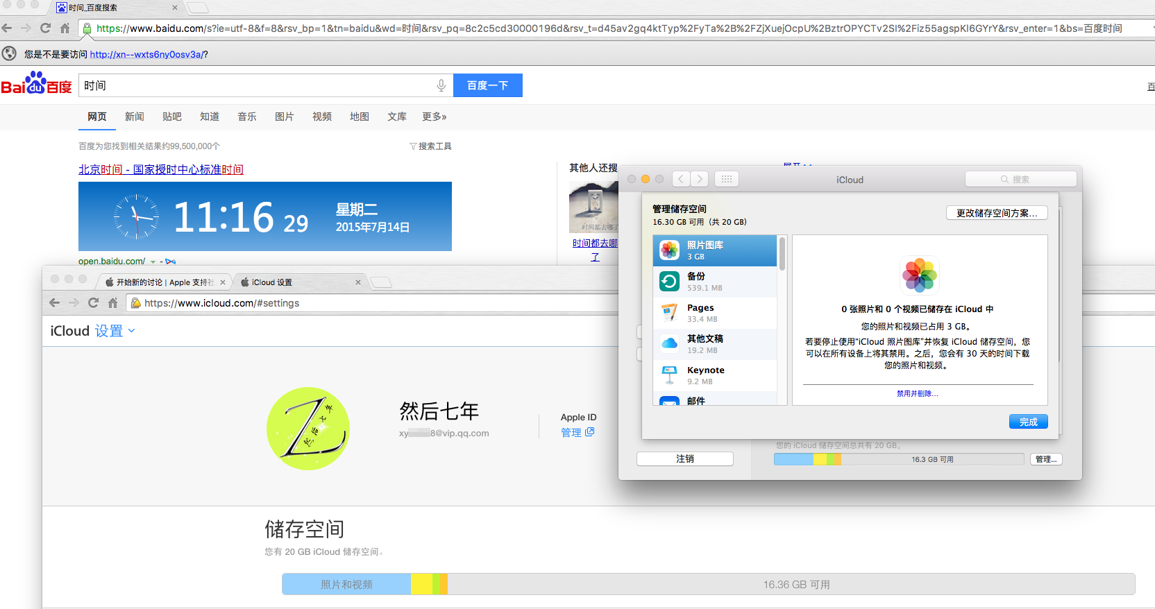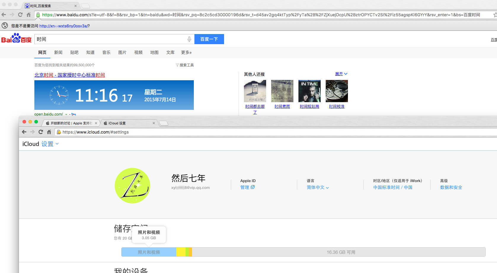 2015年7月8日前的未知日期(记不得了),我的iPhone提示我iCloud储存空间不足,可用空间剩下400M左右。当时我手机内照片有约700张左右,少量视 频,经由提示后,我删除了视频,之后发现iCloud云空间中这部分视频随即被删除(正常),然后发现iCloud可用空间恢复出一点,可用空间为900M左右。