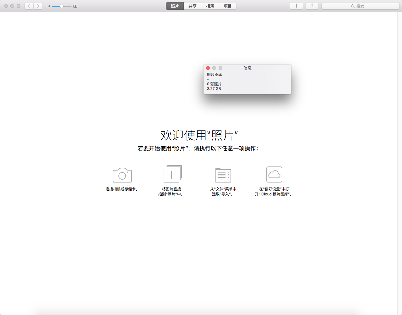 此时,我为了使问题更直观,已经删除所有照片与视频。此时状态如我所描述。