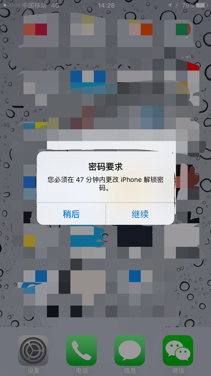 iPhone正常使用,某日正常解锁后,弹出对话框,要求更改解锁密码。什么情况?
