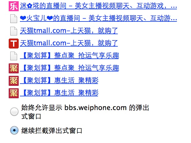 以下用户的用户个人资料: lionrock lionrock 用户级别: 级别 3 615 积分 2013年8月2日 下午5:50 回应 Yang345 你是否已在偏好设置>安全性>勾选了阻止弹出式窗口?http://www.apple.com.cn/safari/what-is.htmlSafari 6 (OS X Mountain Lion): Block pop-ups and unnecessary content 回复 链接