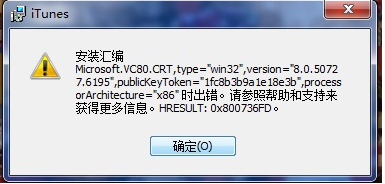 在电脑上面itunes无法安装,policy.8.0.Microsoft.VC80.CRT,type=“win 32-policy”version=“9.0.50727.6195”