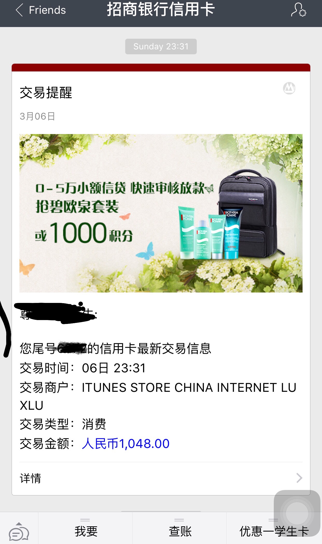 信用卡在iTunes被盗刷,商户名称为 ITUNES STORE CHINA INTERNET LUXLU,请问下要如何解决?