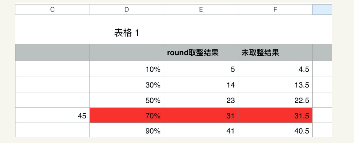 问题如下图,用系统自带numbers计算round公式,标注红色的部分,计算错误。