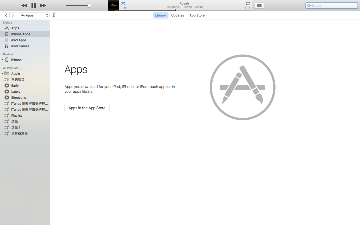 以下用户的用户个人资料: 222sdfghjkl 222sdfghjkl 用户级别: 级别 1 48 积分 2016年8月21日 下午9:13 回应 乱世迷途小书童 打开iTunes之后点你的设备(在左上角那里有一个iPhone的小图标),选择左边栏的“应用程序”选项,在右边有你安装的应用和主屏幕的视图你所说的不显示可能是你认为您的iTunes在选择“应用程序”这个按钮的时候里面没有任何东西,如图iTunes中的应用程序独立于您的iPhone,它显示的只是你的电脑上有什么应用可以直接同步到你的iPhone上,而不是你的iPhone上有什么以上。 回复 链接