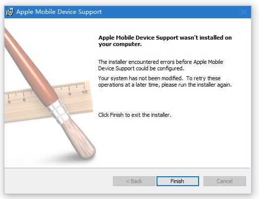 逐一安装,前几个都顺利,到了最后的Apple Mobile Device Support就提示
