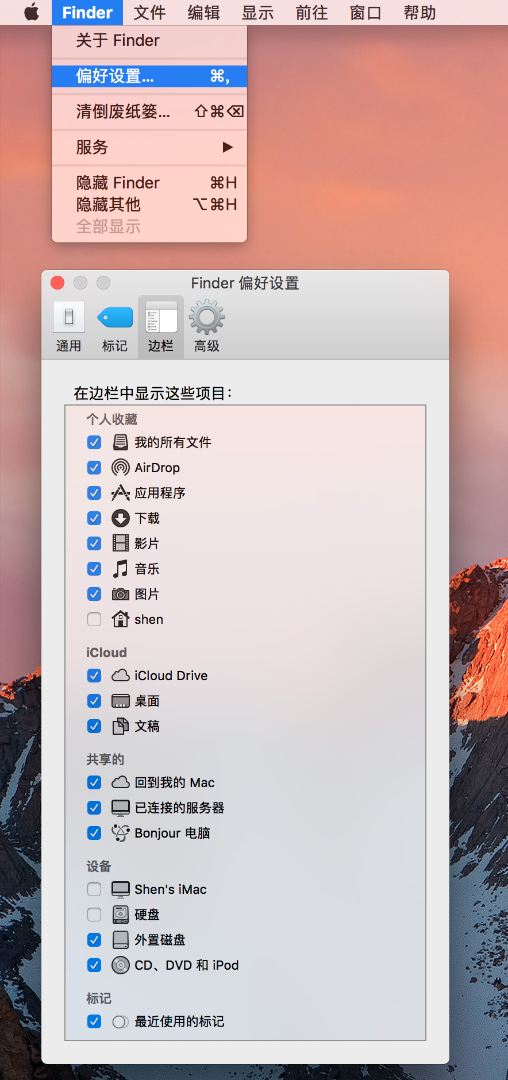 以下用户的用户个人资料: shenfangjie shenfangjie 用户级别: 级别 1 121 积分 2016年11月20日 上午1:56 回应 Crystal T 打开 Finder ,在顶部找到 偏好设置 - 边栏 回复 链接