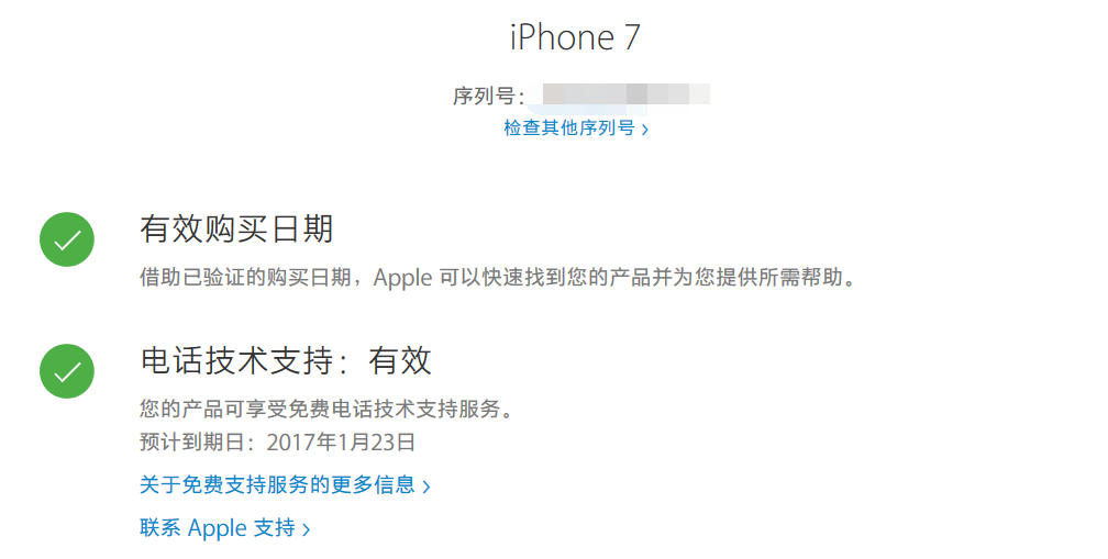 九月多买的苹果7,查序列号到期是17年1月23号 咋回事啊