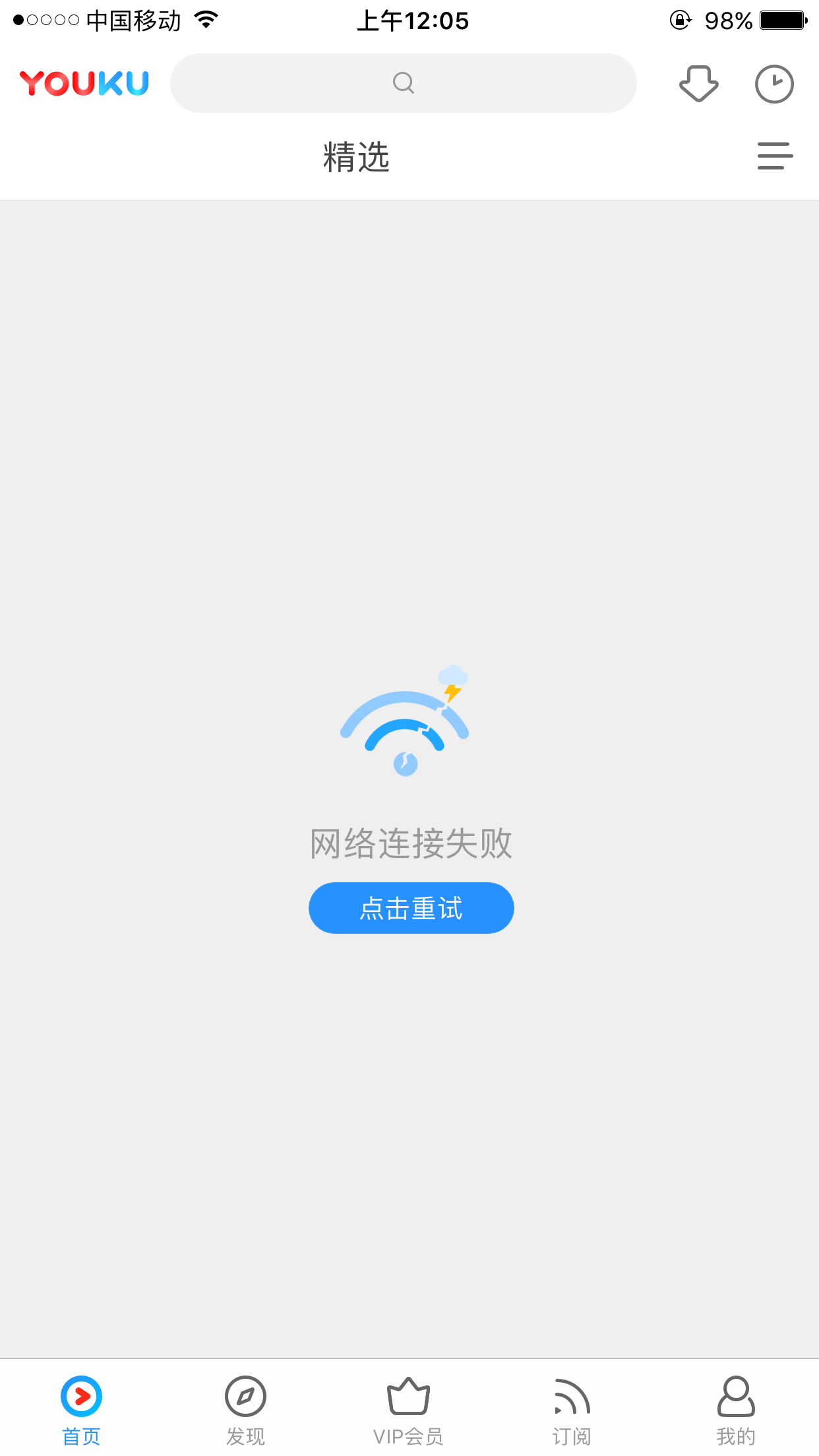 -排查是否是网络的原因,在优酷中点击重试即可。