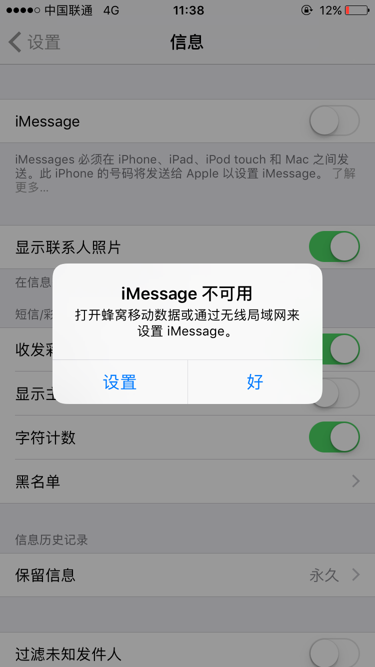 您的iPhone其他APP可以通过4G上网,不代表iMessage也可以用